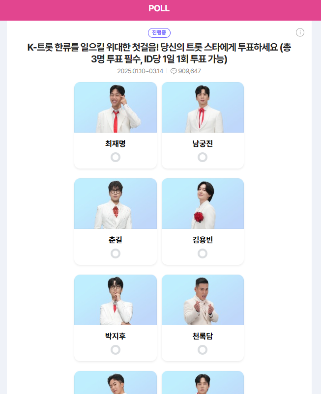 앱 메인 화면에서 ‘미스터트롯3 투표하기’ 배너 클릭