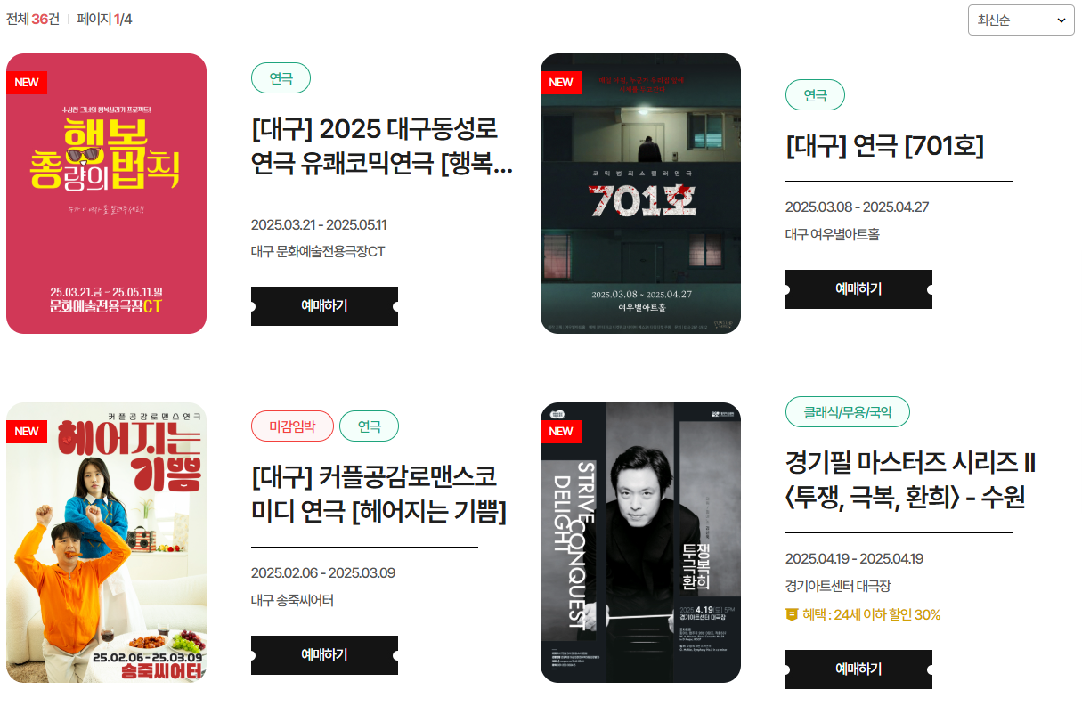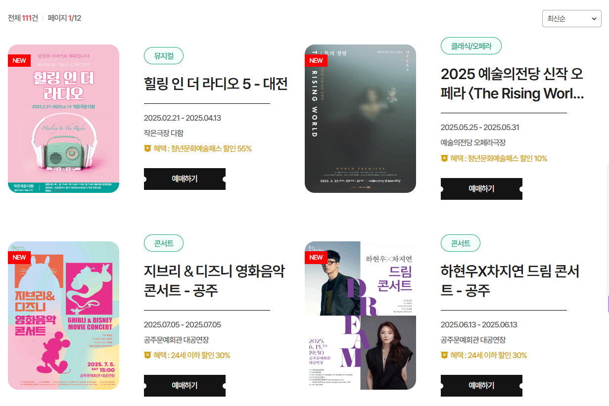 관람할 공연·전시 선택 후 결제