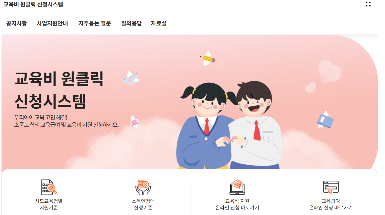 교육비 원클릭 누리집: 간편한 원클릭 신청 (단, 학부모 공동인증서가 필수)